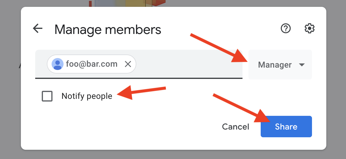 Perhaps you want to give access to this shared drive to an individual, service account, or group.