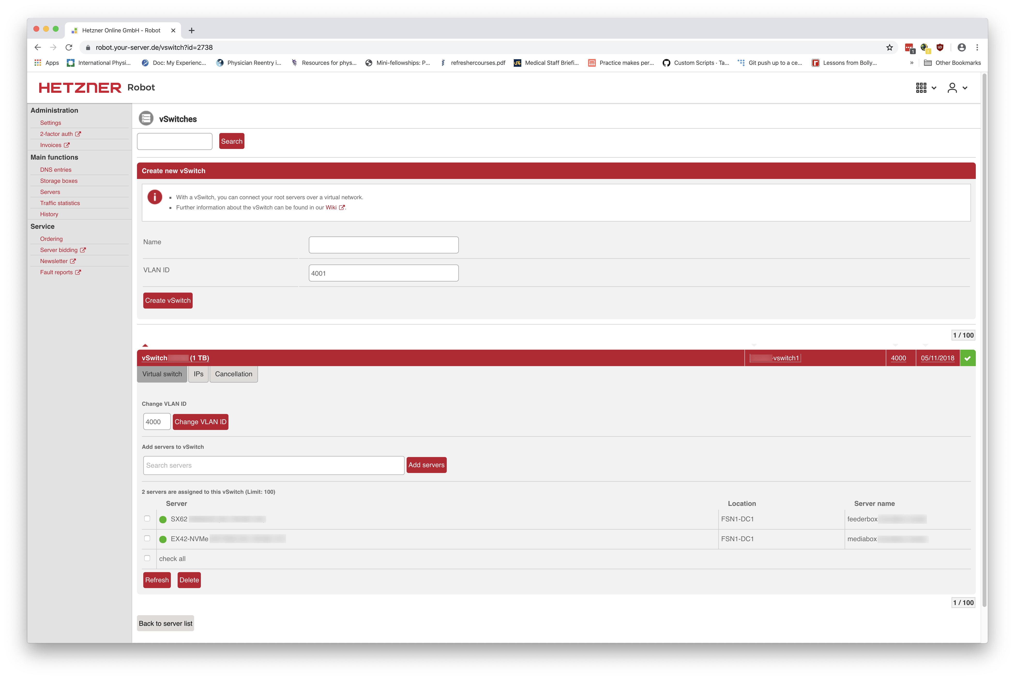 Create a VLAN (vSwitch) and add servers to it. Note the VLAN ID.